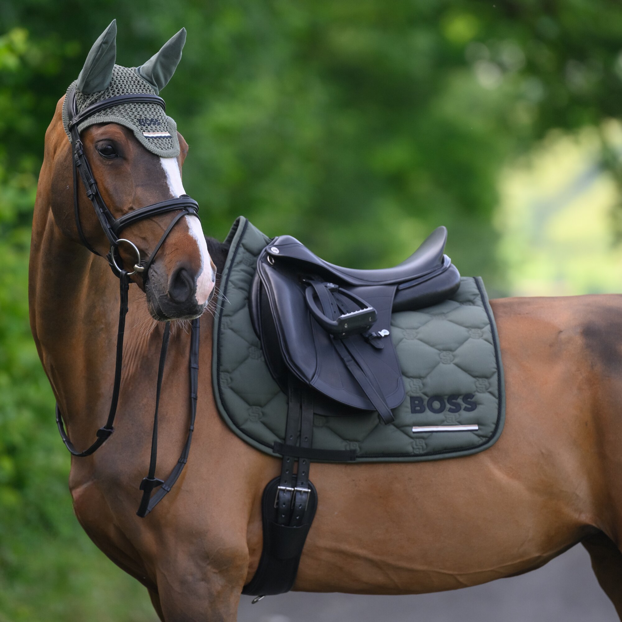 This exclusive Cambridge Dressage Saddle Pad from BOSS Equestrian is made from a durable material blend and the quilting is designed in the iconic Double B pattern. This dressage saddle pad comes with the BOSS logo together with the classic signature stripe underneath.