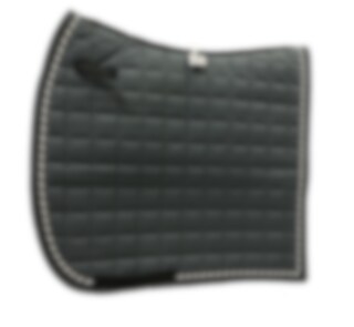 This dressage saddle pad features straight corners and Convoy Grey edging decorated with three rows of piping in Black, Silver/White/Black and Silver. All dressage saddle pads from Mias RS come with soft faux fur at the withers to prevent rubbing. The saddle pad shown here has a large checkered quilt (5 cm). 17"