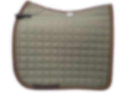 An extremely nice and stylish dressage saddle pad from Mias RS in olive color with piping in light brown and green, and brown edges. The saddle pad has large squares (5x5cm) and, like all saddle pads from Mias RS, has a very high quality and fit.