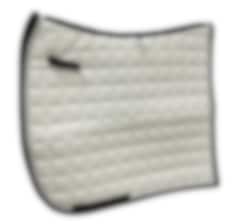 This dressage saddle pad is in a beautiful white color with large quilting and two pipings, one in silver and one in black/silver glitter/white.