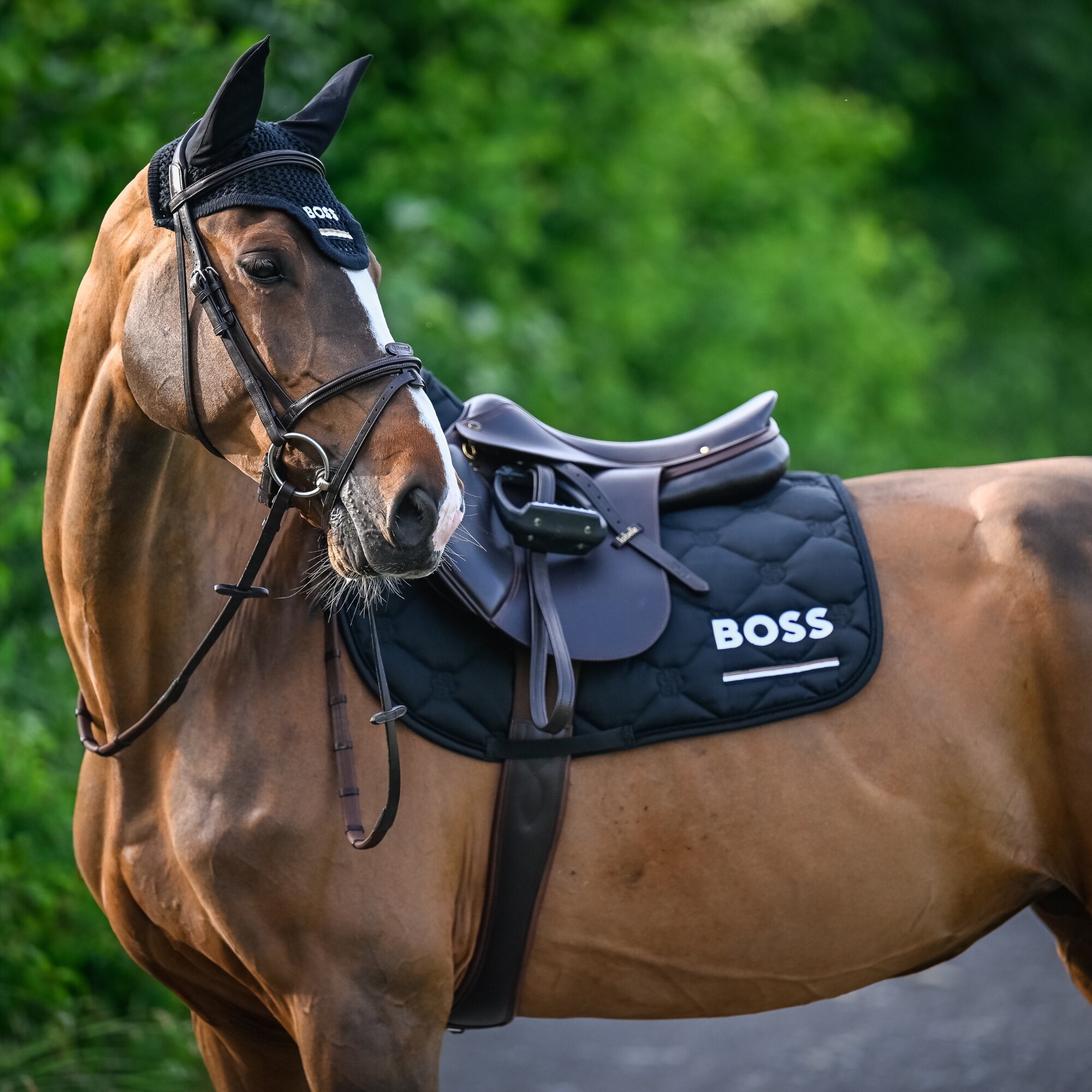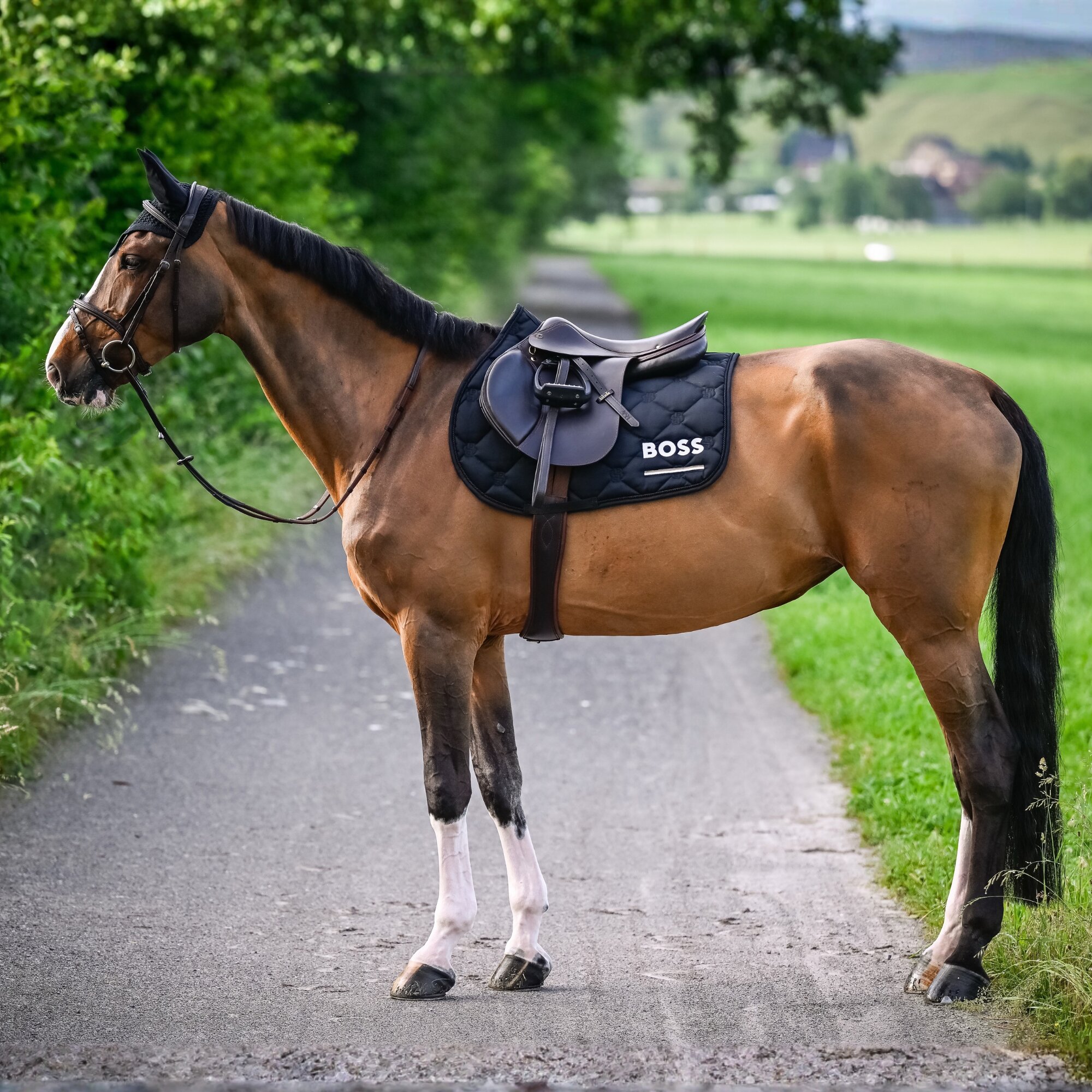 The Cheltenham Jump Saddle Pad from BOSS Equestrian is made from a carefully selected material blend and quilting in the iconic Double B pattern together with the BOSS logo.