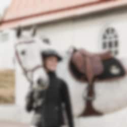 Designed with elegance in mind, the pad is finished with a decorative eco-leather piping and features an embroidered Lippo logo on the left side for an exclusive touch. For practicality, it is equipped with adjustable straps and a Velcro girth strap, allowing for a secure and customised fit.