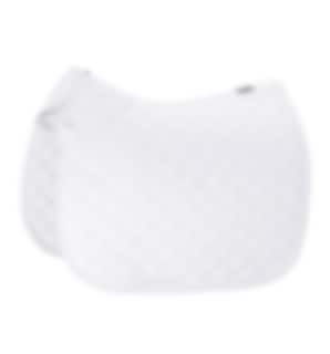 This affordable white competition saddle pad is also equipped with tone-on-tone binding, providing a polished and cohesive appearance.
