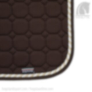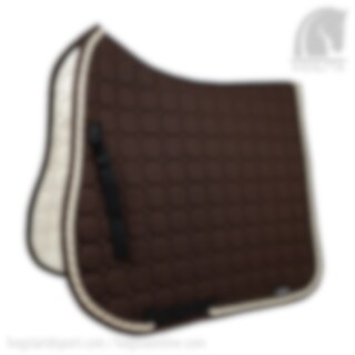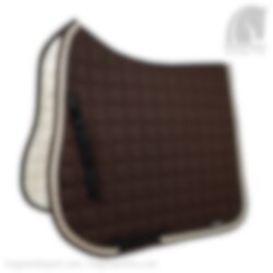 Equiline Octagon Dressage Saddle Pad – Brown with Beige/White/Gold Glitter Piping.