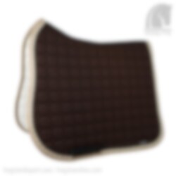 Equiline Octagon Dressage Saddle Pad – Brown with Beige Edging and Beige/White/Gold Glitter Piping.