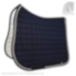 Equiline Octagon dressage saddle pad in Navy with a Navy/Gold/White piping cord.