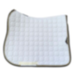 Equiline Octagon Dressage Saddle Pad – White Design with Navy Blue Edging, Gold Glitter Outer Piping and Blue/White/Gold Glitter Outer Piping, the perfect Competition Saddle Pad!