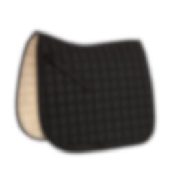 Elegant black dressage saddle pad with Faux Fur lining.