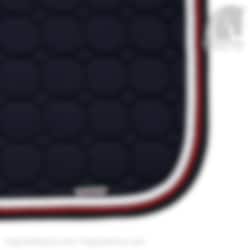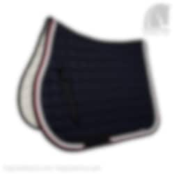 Equiline Octagon Jumping Saddle Pad – Navy Blue with Navy Blue Edging, Red Outer Piping, and White Inner Piping.