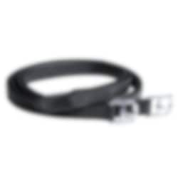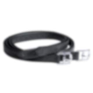 Durable black stirrup leathers made from 100% leather with nylon reinforcement.