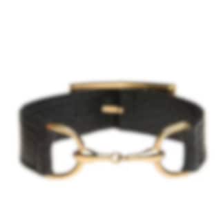 An elegant and unique bracelet for the style-conscious horse lover. Gold/black leather