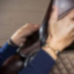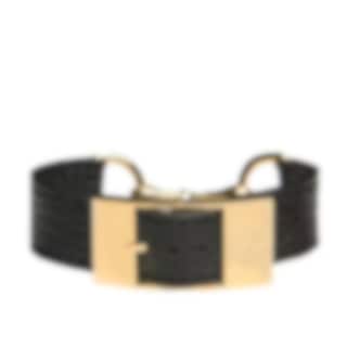 The bracelet features a beautiful bit and buckle in shiny gold-plated steel, combined with a sleek black leather strap. Just like your favourite shoes, the leather softens and becomes more supple over time, making it even more comfortable to wear.