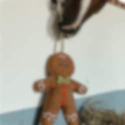 Horse Toy Gingerbread Man is a cute and festive decoration for the stall. Perfect as a Christmas gift for both horse and rider, spreading a joyful holiday spirit in the stable.