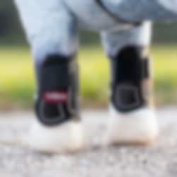 These stylish and functional brushing boots are designed to look just like the real Lemieux Capella Boots, featuring durable faux leather strike guards and perforated sections for ventilation. The elasticated hook-and-loop straps make them easy to put on and take off – perfect for young riders learning how to protect their pony’s legs before riding.