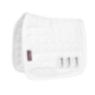 Dress up your Toy Pony and get it ready for the dressage arena with this white dressage saddle pad. The pad features quilted padding and removable competition numbers for an authentic look.
