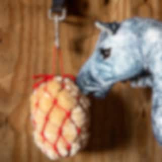 Feed your Toy Pony with this charming miniature hay bale in a red haynet.