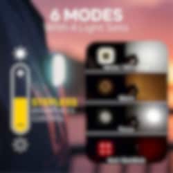 - Six light modes: Daylight, Warm light, Focused beam, Steady red, Flashing red, and SOS