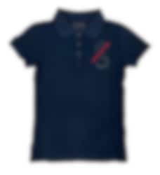 This pike with short sleeve for juniors has a classic navy color with black and red Cavalleria Toscana logo on the chest. Junior CT Team Pike has tre buttons and a printed quote in the back that says "Train hard. Ride easy.".
