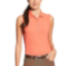 Prix Sleeveless Polo Pique from Ariat has a close-fitting model and is a bit longer than a classic pique. This riding pique has silver details like the buttons and Ariats logo on the left chest. Prix Polo Pique is made in a thin, soft and ventilating function material. Material: 62% cotton, 35% polyester, 3% elastane