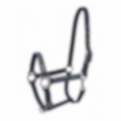 The practical halter from Lami-cell has buckles at the neck and under the chin, which allows you to easily adjust the size of the halter. The halter is made of polypropylene and is in a classic navy color with darker silver buckles and for the best comfort, the halter is lined with a soft synthetic suede.