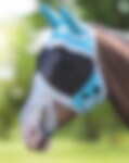 Fly mask from Shires with ears and fringes by the nose for protection. Teal/Grey