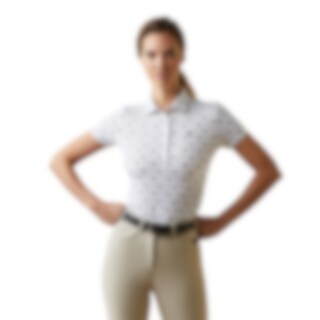 This riding polo is made in a supersoft and wonderful material with short sleeve. The riding polo has several buttons at the collar and an Ariat logo on the chest. The riding shirt is in a white colour with bit and stirrup print all over the riding shirt.