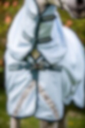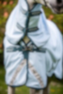 The Amigo Plant-Dye blanket has 50 grams of filling and the outside is made of a durable 1200D polyester material. This horse blanket includes a removable neck, the front has the popular V-front buttoning, 3 cross straps under the belly, large tail patch and tail strap. Horseware Amigo Plant-Dye has reflective strips on the front and back for increased visibility in the dark.