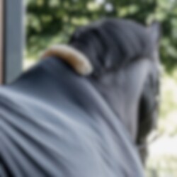 The material of this mesh rug is very breathable and strong, so that the horse still will be able to enjoy a breeze of fresh air. The sheet is anatomically shaped for best fit and to prevent the rug from moving during the day. On top of that there are removable suringles and artificial sheepskin at the withers.
