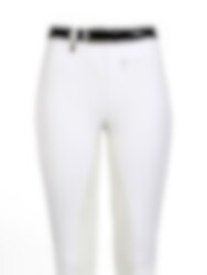 The Lugana is a straight-cut model featuring a small front zip pocket. This specific pair is made from the so-called "beridar material," which is slightly denser and therefore less see-through compared to other materials. When choosing breeches for shows and competitions, this is an excellent option.