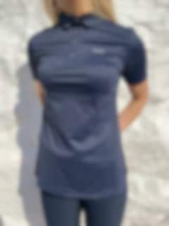 The riding shirt Dasha is a piqué with Pikeur printed on the left side of the chest, the riding piqué is slightly longer with two slits on the side, which makes it reallu nice to ride in.