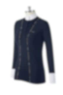 Bimix LS Polo from Animo has a nice navy ribbed material with long arms. The competition shirt is super stretchy and comfortable and has buttons in front and a white collar. Bimix competition shirt has the classical Animo logo in glittering stones on the chest. Material: 90% Polyamide, 10% Elastane Color: Ombra