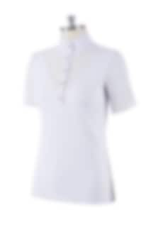 Brina competition shirt is made of an incredibly soft material that is very comfortable to wear. The shirt also has beautiful details in the lace on the sleeves and over the chest, as well as ANIMO's logo discreetly in stones on the left chest.